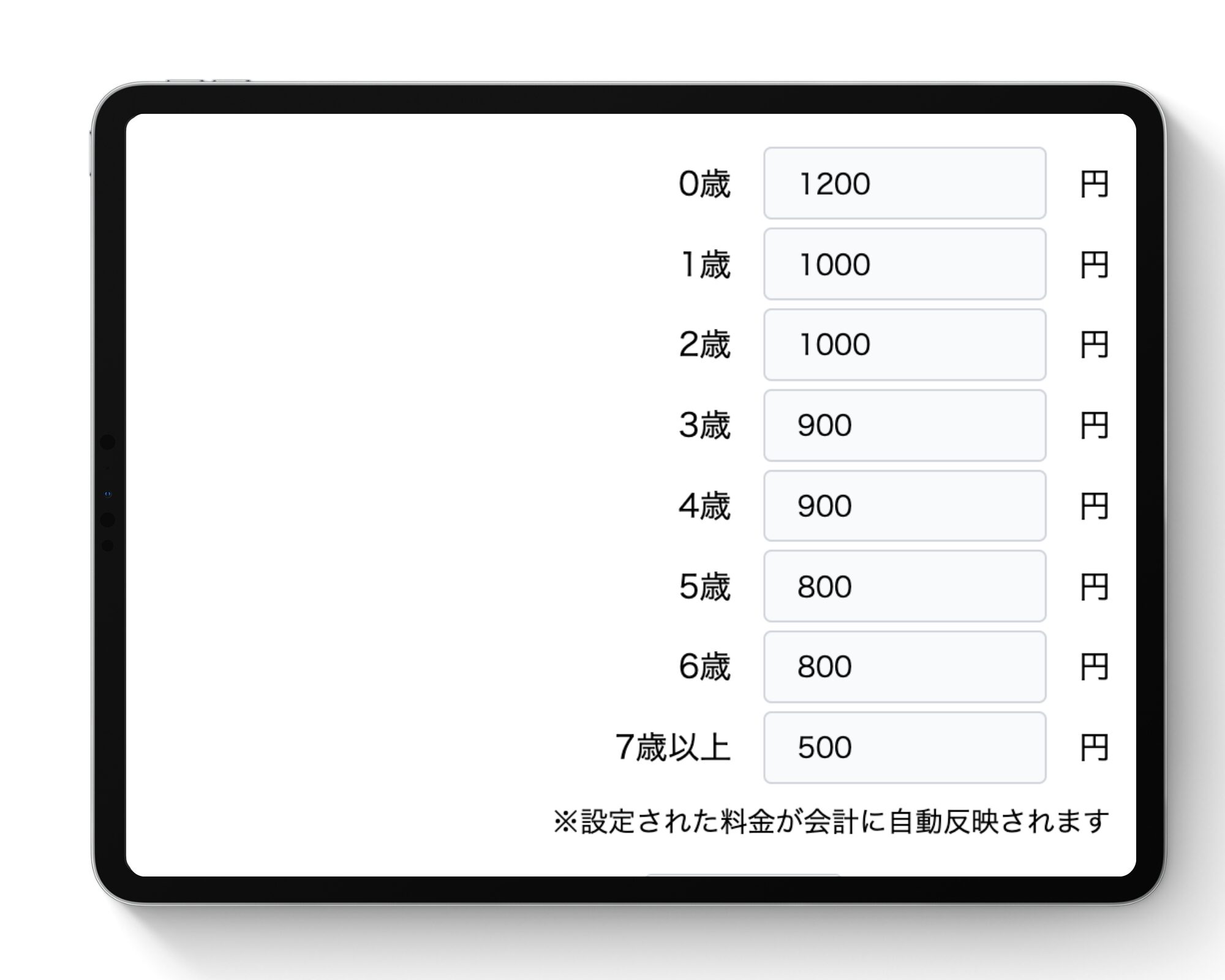 預かり時間から園児の年齢に合わせて、利用料金を自動計算する機能です。