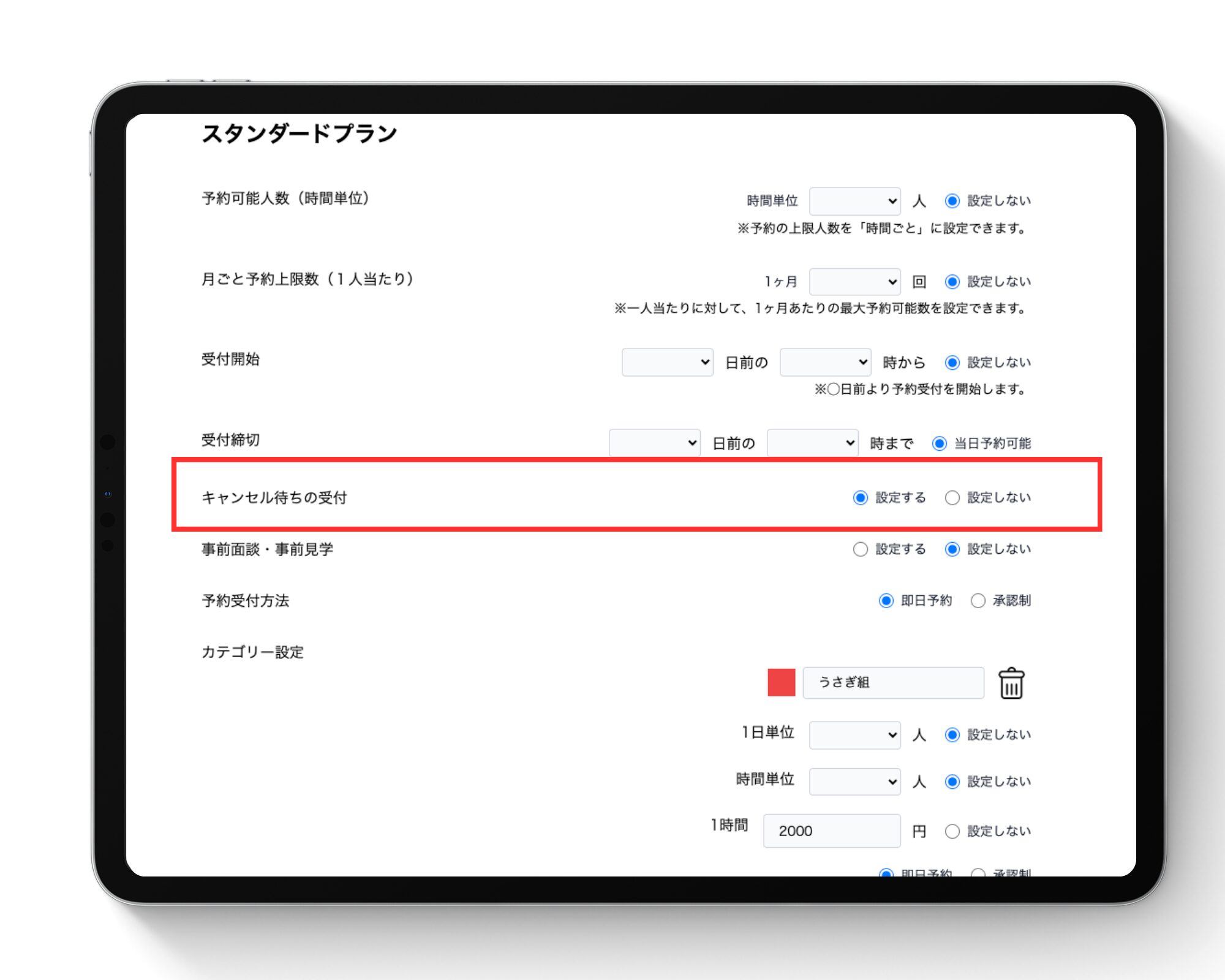 キャンセル待ちの設定ができます。
