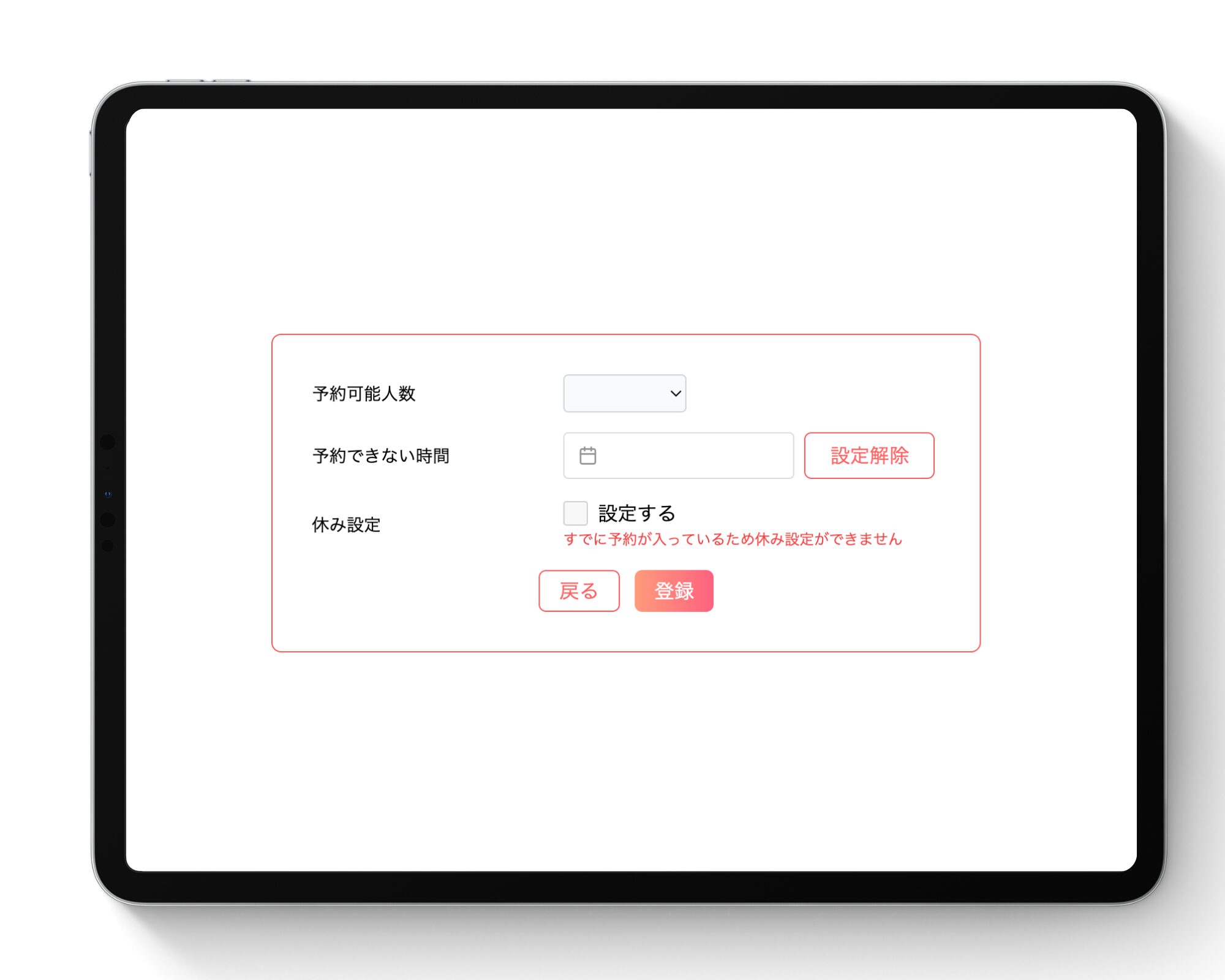 ・予約時間の制限(例:13時〜15時は受付不可など)